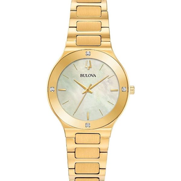 Este elegante y elegante reloj para mujer de la colección Bulova’s Millennia es un impresionante diseño de moda.