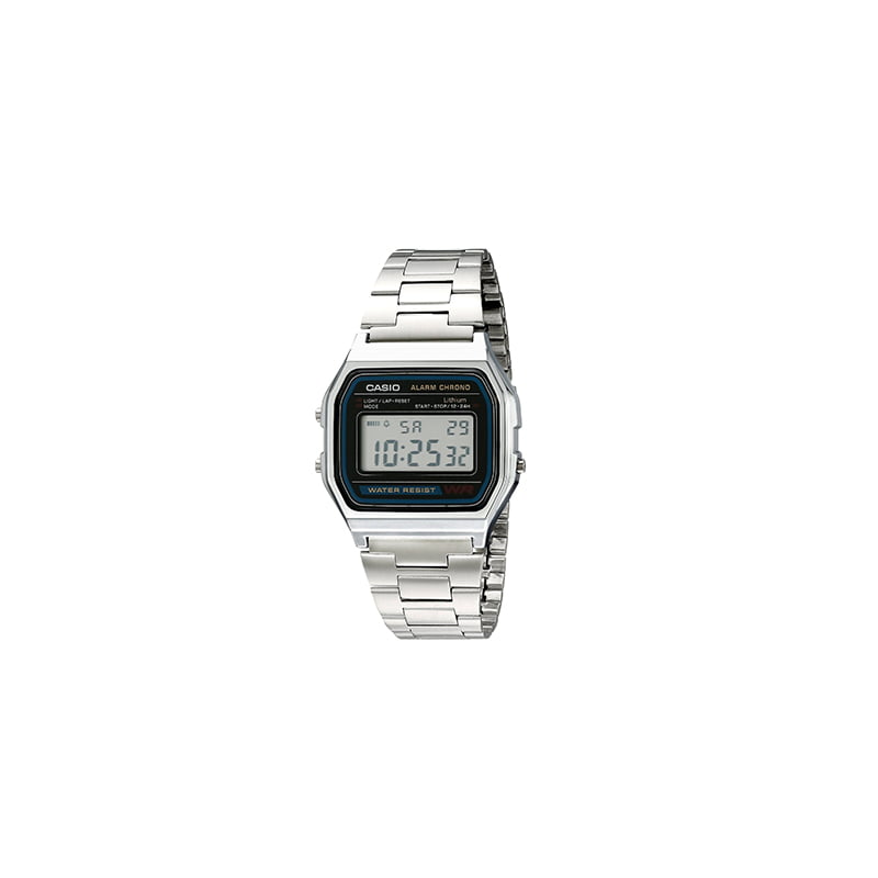 Reloj unisex de acero inoxidable en color plateado. Esfera gris cristal digital, Movimiento de cuarzo. Cristal mineral resistente a los arañazos. Fecha, hora, minuto, segundo, luz led, cronómetro, temporizador, alarmas diarias, formato de 12/24 horas.