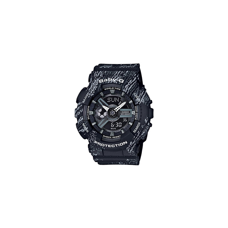 Reloj para mujer de acero inoxidable con brazalete de resina en tono negro. Esfera digital con manecillas plateada luminiscentes y marcadores índice de hora. Movimiento de cuarzo. Cristal mineral resistente a los arañazos. Resistente al agua. Fecha, día, hora, minuto, segundo, hora mundial, cronómetro de 1/100 segundos, temporizador de cuenta atrás, 5 alarmas diarias.