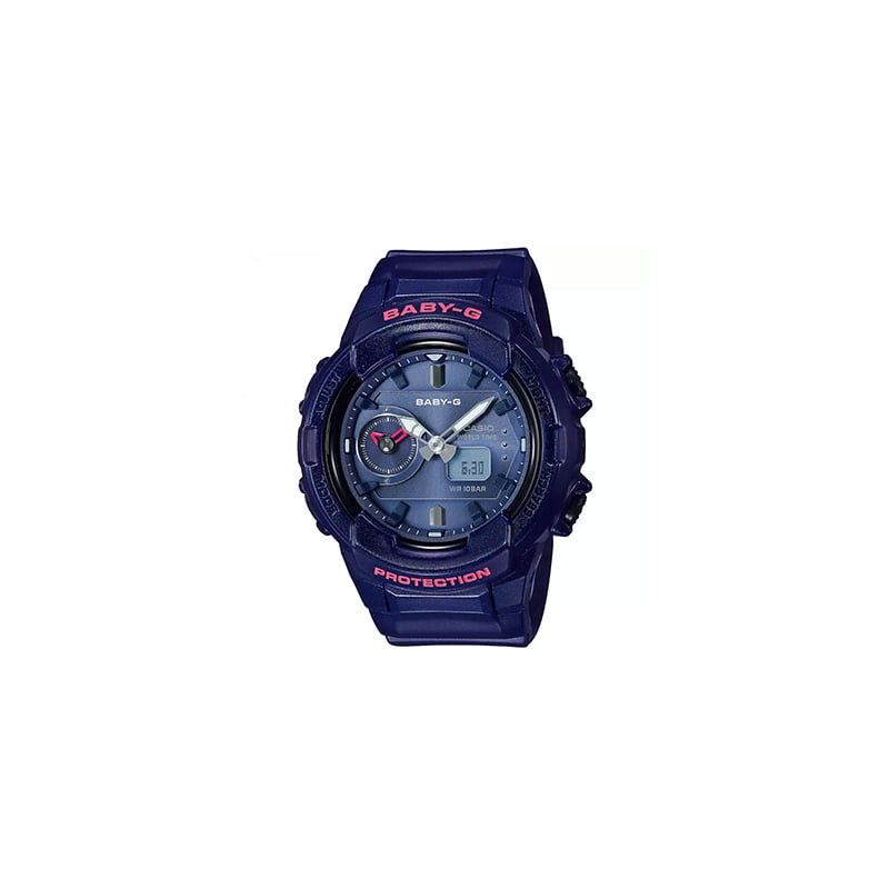Reloj para mujer de acero inoxidable y de resina en color azul marino. Esfera marino, digital (electrónica) con agujas luminosas. Movimiento de cuarzo. Cristal mineral resistente a los arañazos. Fecha, día, hora, minuto, segundo, luz led, hora mundial, cronómetro, temporizador de cuenta atrás, alarma diaria, formato de 12/24 horas.