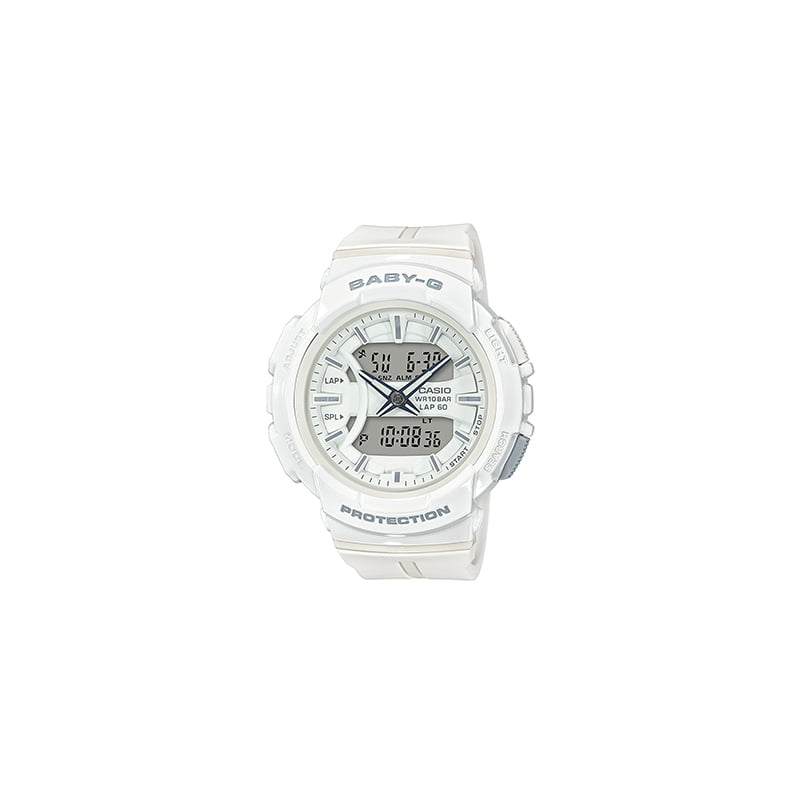 Reloj para mujer de acero inoxidable y de resina en color blanco. Esfera blanco, gris digital (electrónica), analógico con agujas luminosas . Movimiento de cuarzo. Cristal mineral resistente a los arañazos. Fecha, día, hora, minuto, segundo, luz led, hora mundial, cronómetro, temporizador de cuenta atrás, 3 alarmas diarias, formato de 12/24 horas.