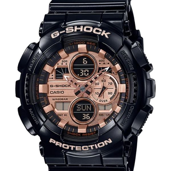 Estos nuevos modelos son las últimas novedades de la serie de relojes analógicos digitales.G-SHOCK GA-140. El GA-140GB tiene un acabado negro brillante y detalles dorados.