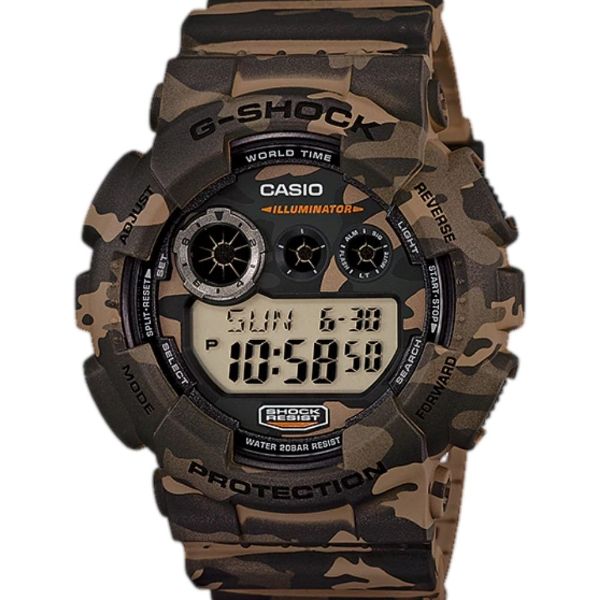 La serie GD-120 luce un nuevo diseño de caja. El patrón de camuflaje de bosque de los modelos GD-120CM hace que estos relojes se ajusten perfectamente a la escena de la moda urbana actual.