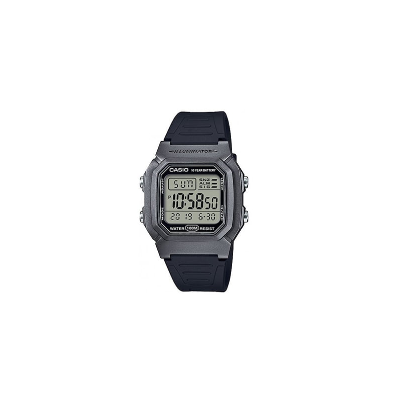 Reloj para hombre de acero inoxidable y de resina en color negro y gris. Caja gris cristal digital, Movimiento de cuarzo. Cristal mineral resistente a los arañazos. Fecha, hora, minuto, segundo, luz led, cronómetro, temporizador, alarmas diarias, formato de 12/24 horas.